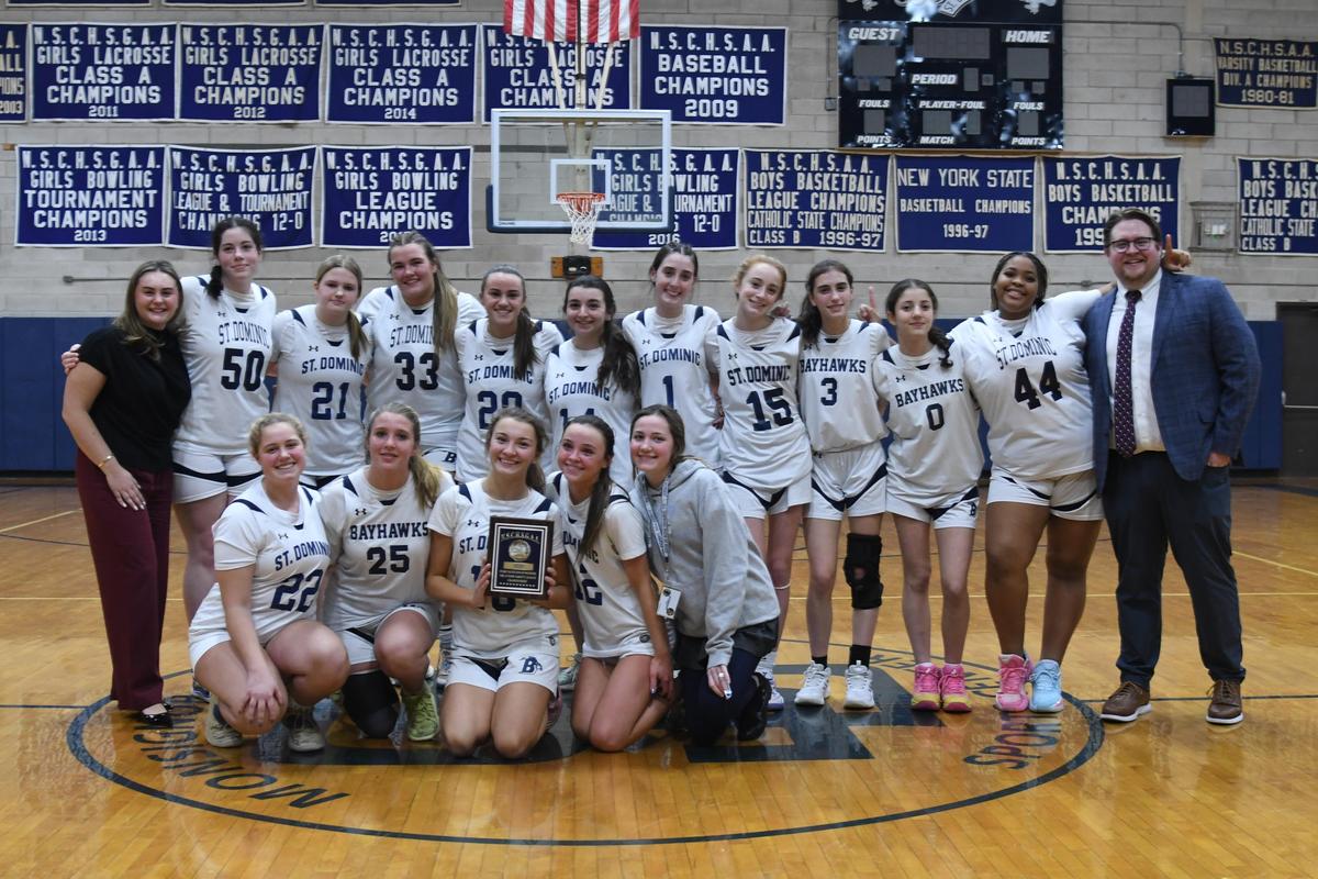 Congratulations to the JV Girls' Basketball Team for an incredible season, finishing the season with just one league loss and winning the championship game against St. Anthony's on Thursday, February 5th. This is our first JV championship since 1992 and a great accomplishment for the team which is only in its second year after being revived last year. A hard-fought and well-deserved victory for our Lady Bayhawks!